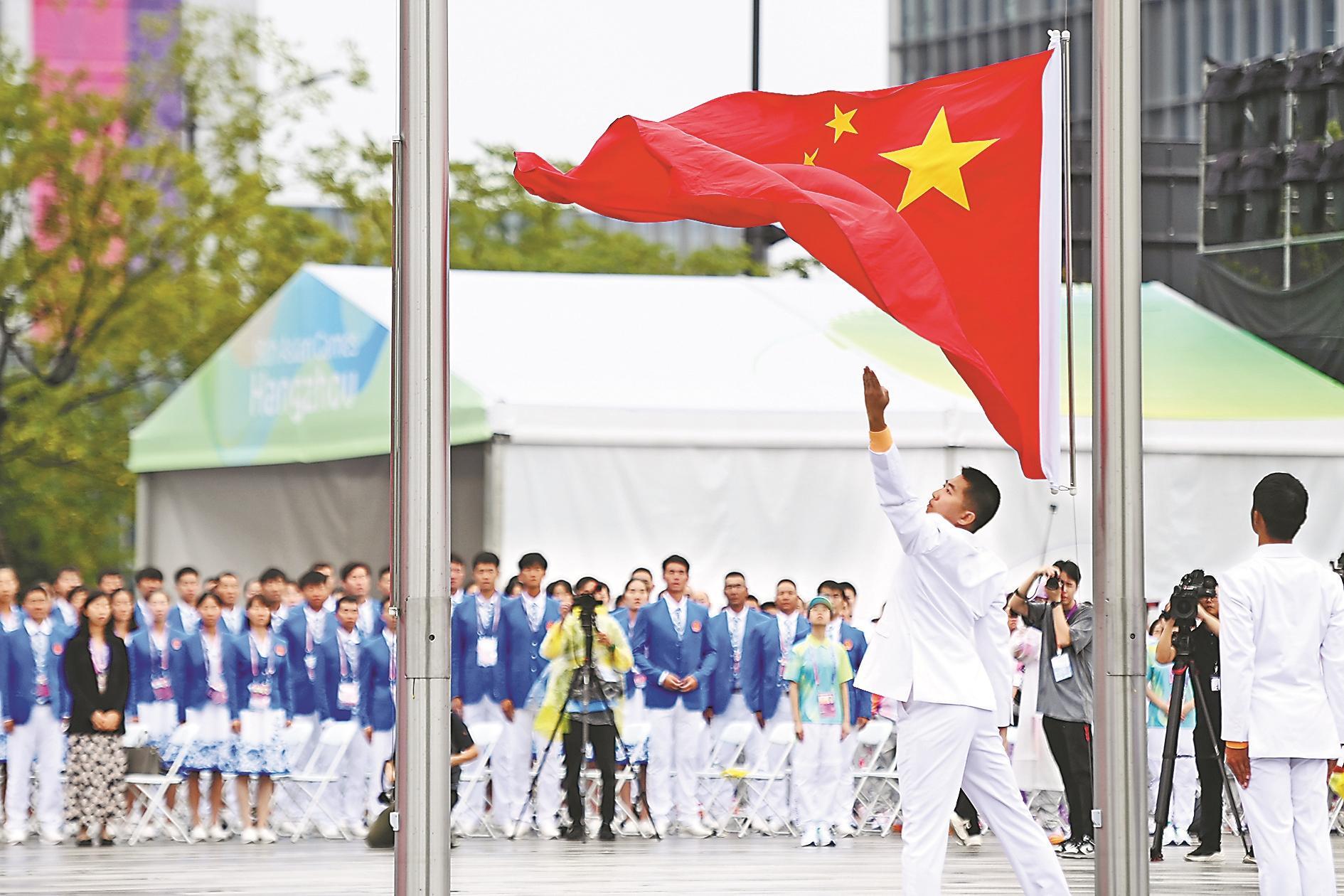 9月16日,杭州亚运会亚运村开村仪式暨中国体育代表团欢迎仪式在杭州亚运村旗帜广场举行。这标志着杭州亚运村及5个亚运分村、3个运动员住宿酒店同时开村,开门迎接各代表团入住。