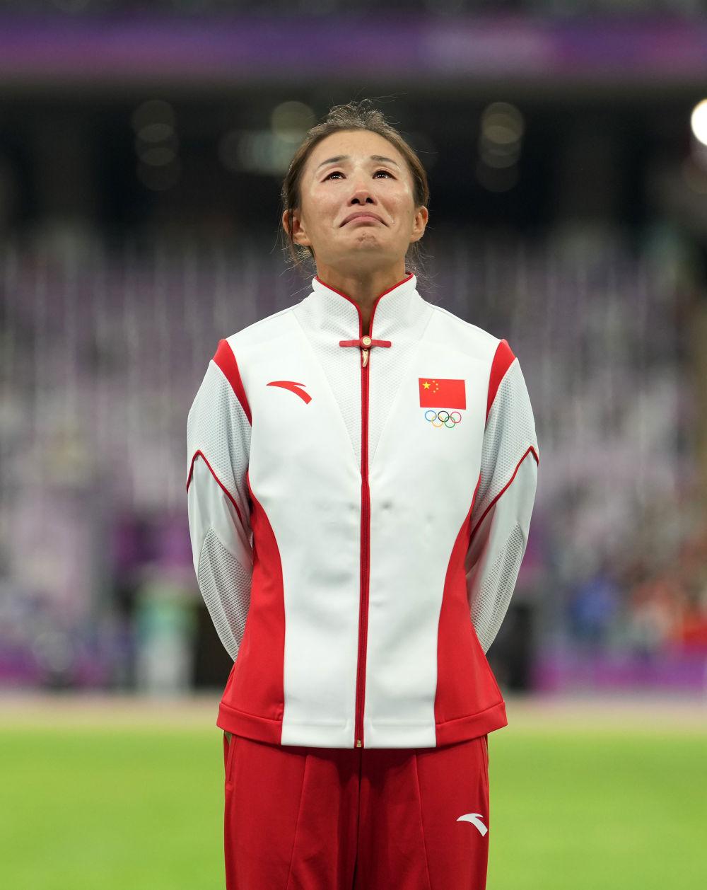 新华社杭州10月4日电(记者王浩明、吴俊宽、李典、陈晨)杭州奥林匹克体育中心体育场,万人瞩目,切阳什姐登上领奖台,当国歌奏响,她再也抑制不住,泪水夺眶而出。