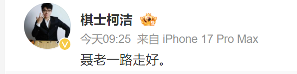 “棋圣”聂卫平于2026年1月14日晚在北京病逝,享年73岁。柯洁于15日上午通过个人微博“棋士柯洁”发布悼文称:“聂老一路走好”。