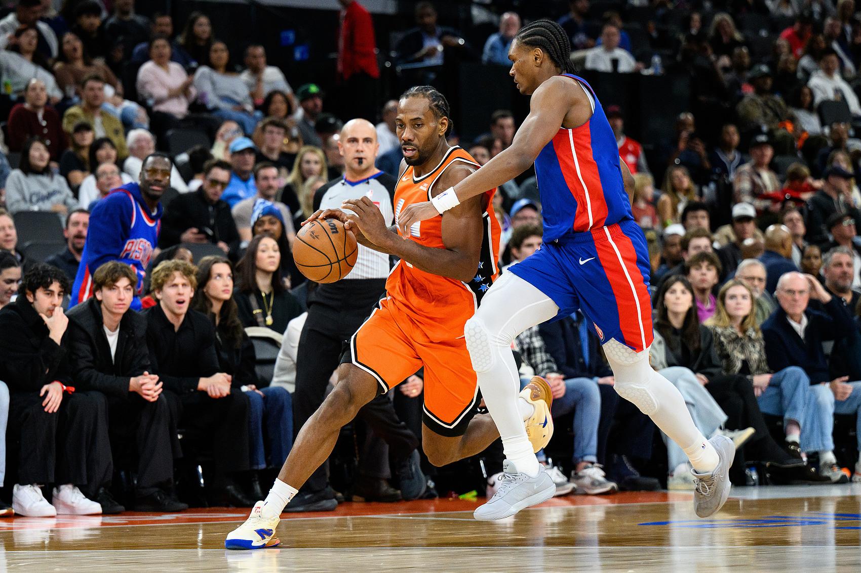 值得一提的是,伦纳德本场的55分也追平了由队友哈登在本赛季创造的队史个人单场得分纪录,在一个月前客场挑战黄蜂的比赛中,快船球星哈登登场35分钟砍下55分3个篮板7次助攻,本场哈登得到28分4个篮板7次助攻,其在开场阶段的个人进攻表现使得活塞为其倾注较多防守资源,从而让伦纳德获得较为良好的进攻环境。