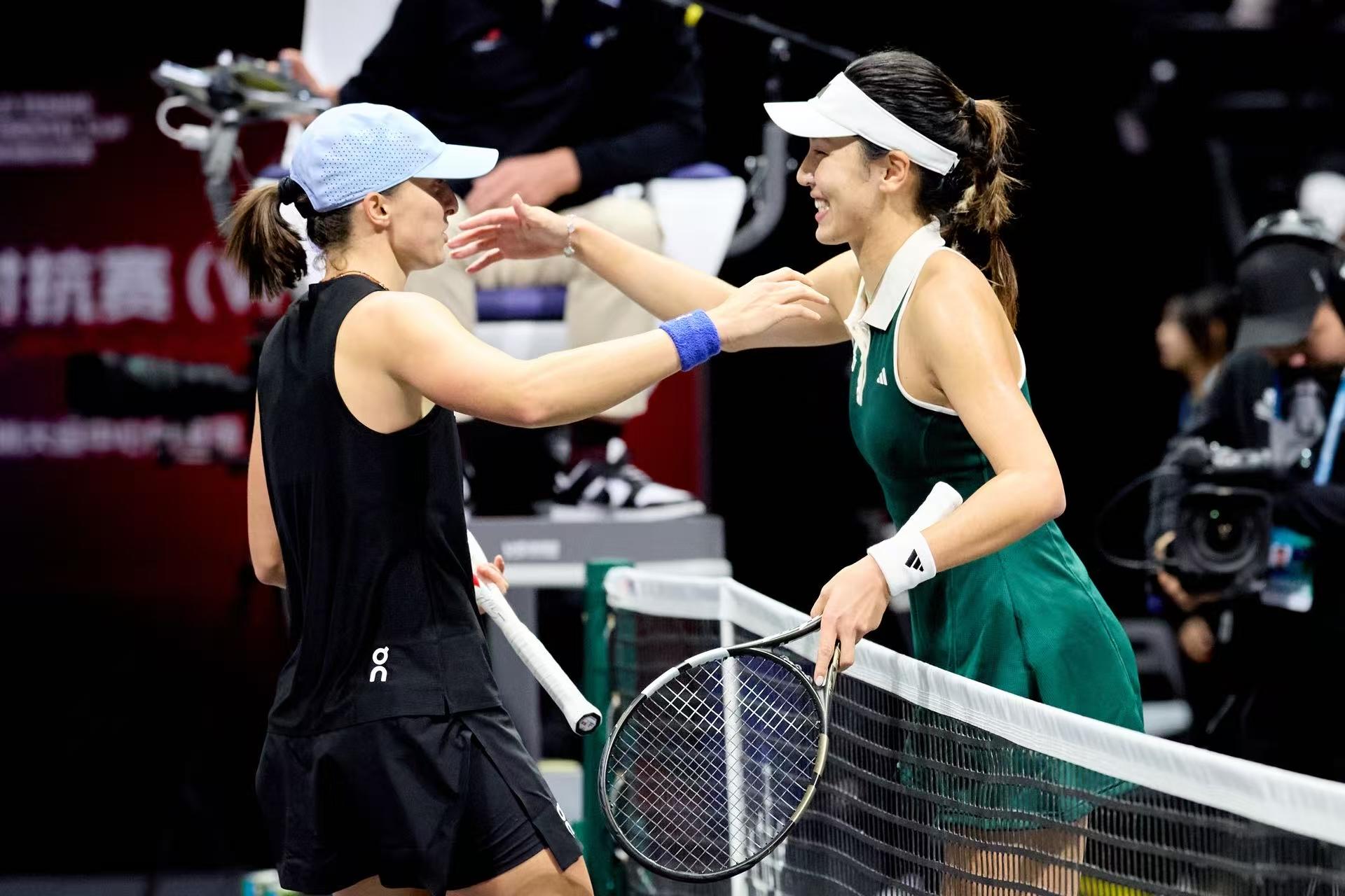 王欣瑜在采访中表示,能够在主场与这么多顶尖球员比赛感到非常开心,今天的比赛她打出了很多变化,深圳的比赛氛围非常好,希望球迷在后续几个赛段能继续来到现场为球员加油。