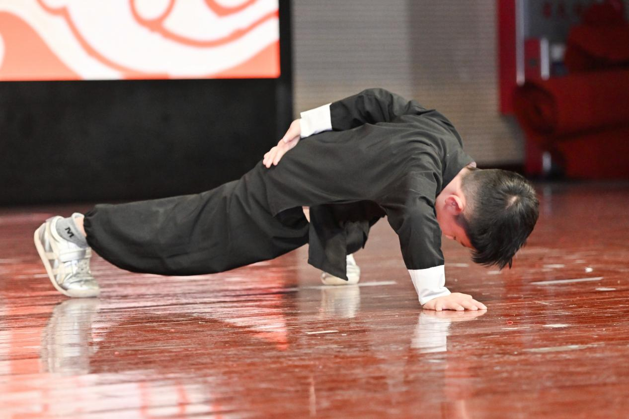 最小的表演者是省级非遗项目南枝拳传承人黄天添。别看他只有七岁,但能在一分钟内完成六十个单手、双拳、双指俯卧撑,还能接着打一套刚猛的南技拳。从他的身上,看到了传统武术的未来。