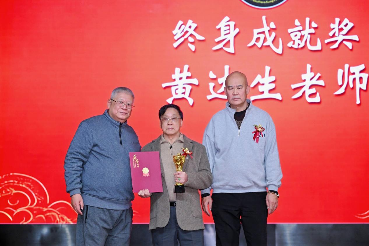 为此,在交流大会前举行的广东省南派武功研究会第三届领导集体就职典礼上,将终身成就奖授予了黄达生、萧永定、梁华顶和白华杏,以表彰他们对岭南传统武术的贡献。在他们身上体现的坚毅、仁德、友爱和恒心,是当代岭南武术文化的精神。