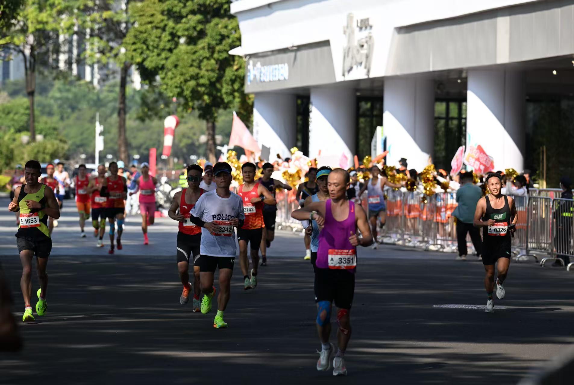 这种微观关怀也渗透于赛事的毛细血管:起点及沿线新增的数百个厕位,直接回应了往年跑者的“痛点”;“不存衣”选项与配套保温披风,既延续了十五运会提倡的绿色理念,也给予了跑者更自由的选择;从全程人脸识别带来的便捷与从容,到为精英跑者准备的“破三服”、为生日跑者送上的专属祝福,服务颗粒度不断细化。正如一位参加过三届广马的香港跑者所言,完善的配套(越来越完善的交通)、富有人情味的细节(如参赛包中融入粤语文化的设计),让人倍感亲切。这些举措,与十五运会期间备受赞誉的“无感通关”“一赛跨三境”等融合便利举措一脉相承,共同构成了“湾区效率”与“湾区温度”的注脚。