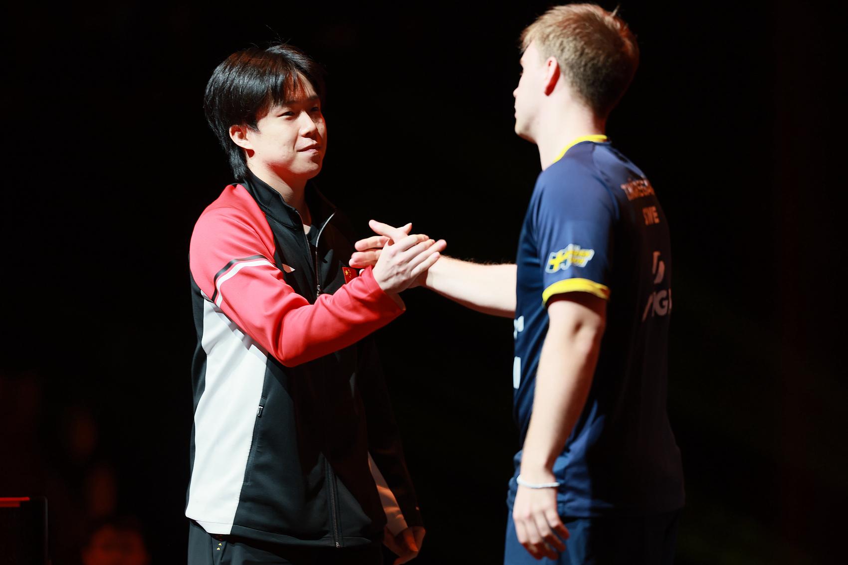 第二场男单半决赛按计划应在王楚钦和莫雷加德之间进行,但王楚钦赛前选择退出比赛被判负,莫雷加德直接晋级决赛,本站男单冠军也将在张本智和、莫雷加德两名外协选手之间产生。