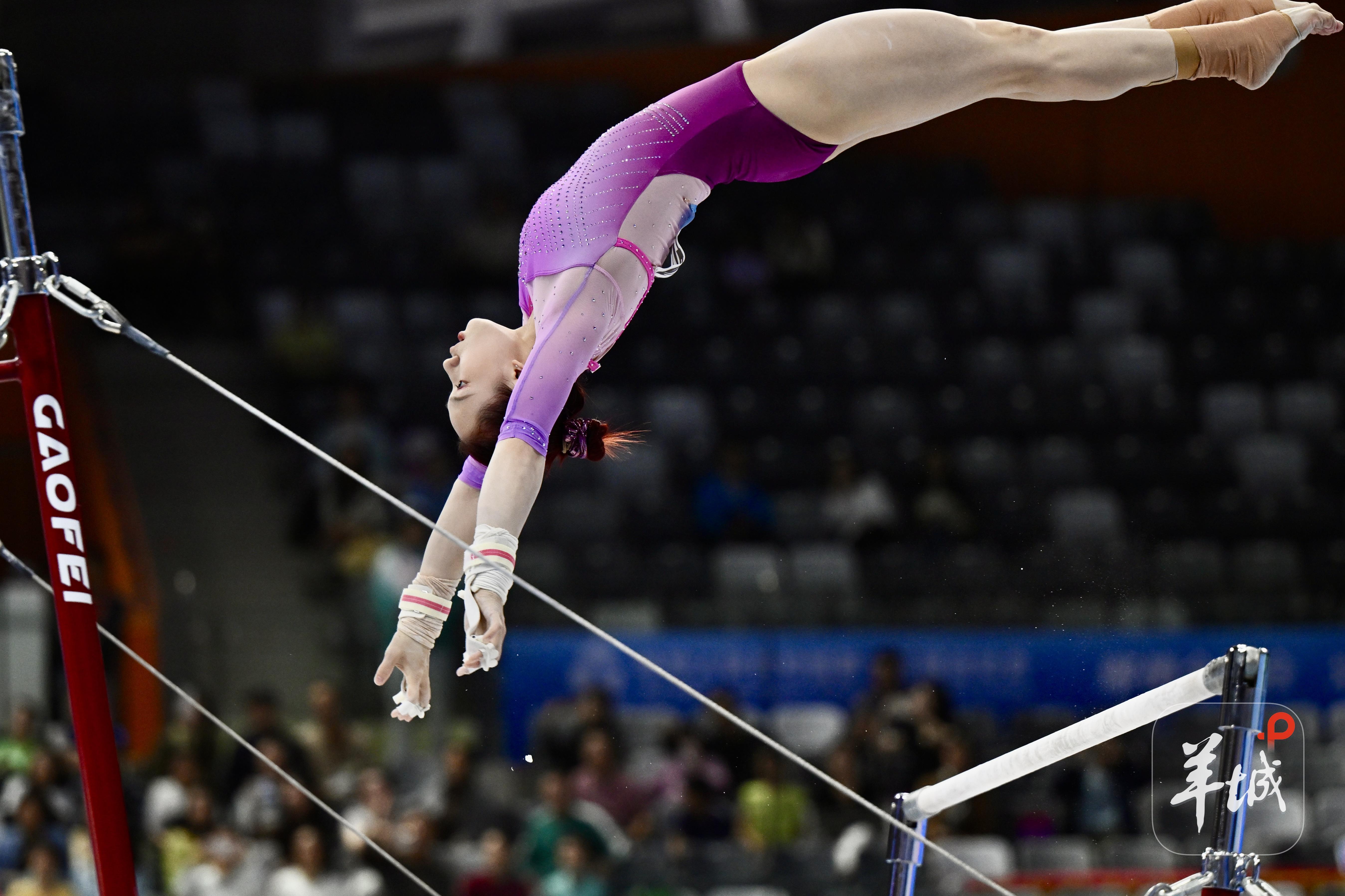 11月13日晚,十五运会体操成年组女子团体决赛在肇庆上演。邱祺缘、张清颖、欧钰珊、章瑾、张怡涵等世界名将带领各自队伍悉数登场。经过两个半小时的比拼,预赛排名第一的浙江队与排名第二的广东队紧咬比分,鏖战到最后一轮、最后一套。