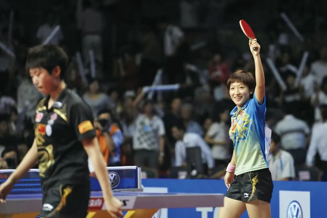 2009年在广州,刘诗雯在世界杯女单决赛中战胜郭跃夺冠。18岁的她球拍在手,带着朝气蓬勃的笑容被相机定格。这是她职业生涯的第一个三大赛单打冠军。