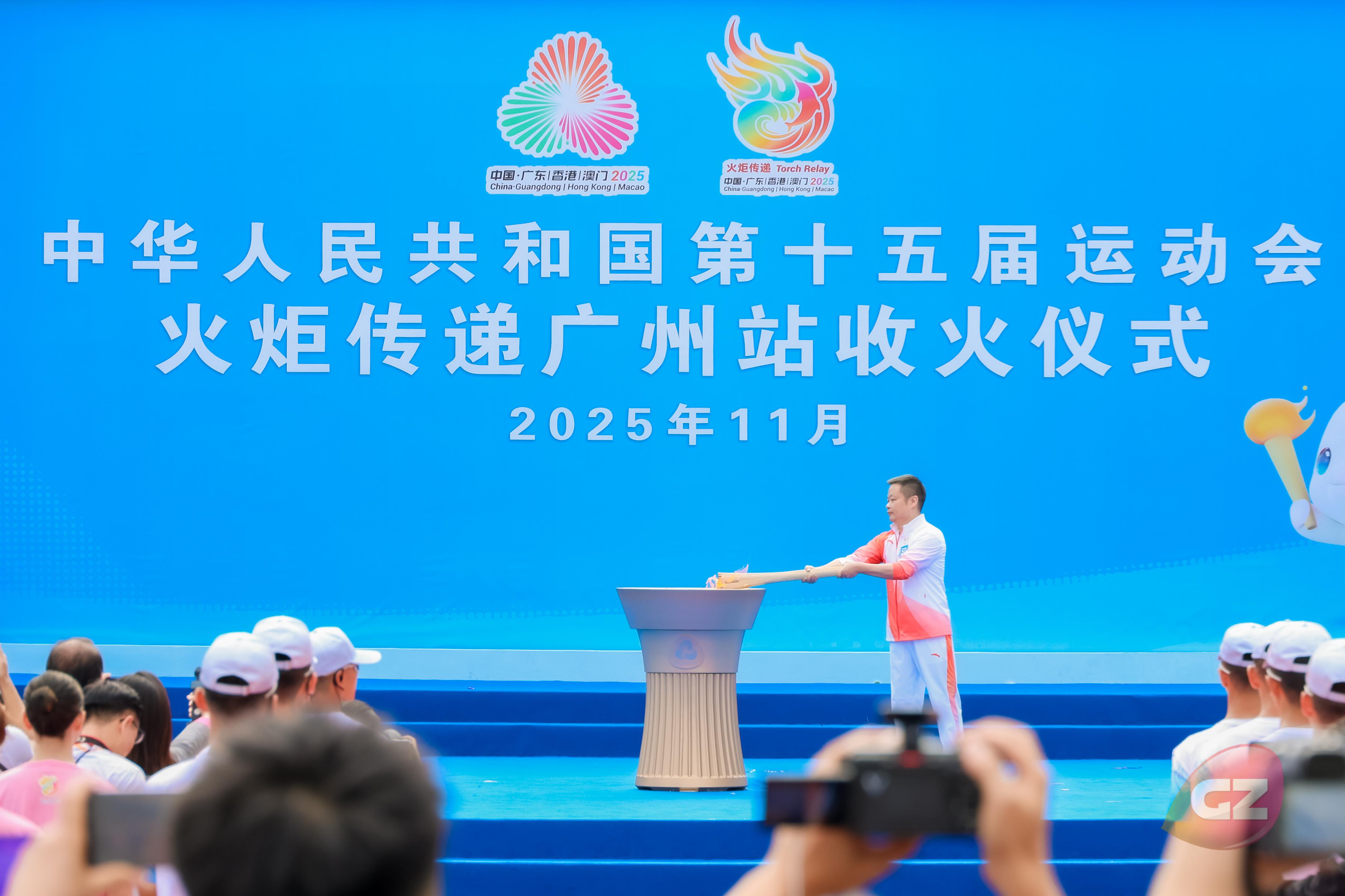 2025年11月2日,越秀公园镇海楼,第十五届全国运动会火炬传递广州站起跑仪式现场。9时50分许,雅典奥运会男子双人10米跳台冠军、首位由广州市培养的跳水奥运会冠军杨景辉,手持象征“融”与“荣”的十五运火炬“绽放”,挥手向翘首以盼的市民致意,整座城市积蓄已久的热情被瞬间点燃。