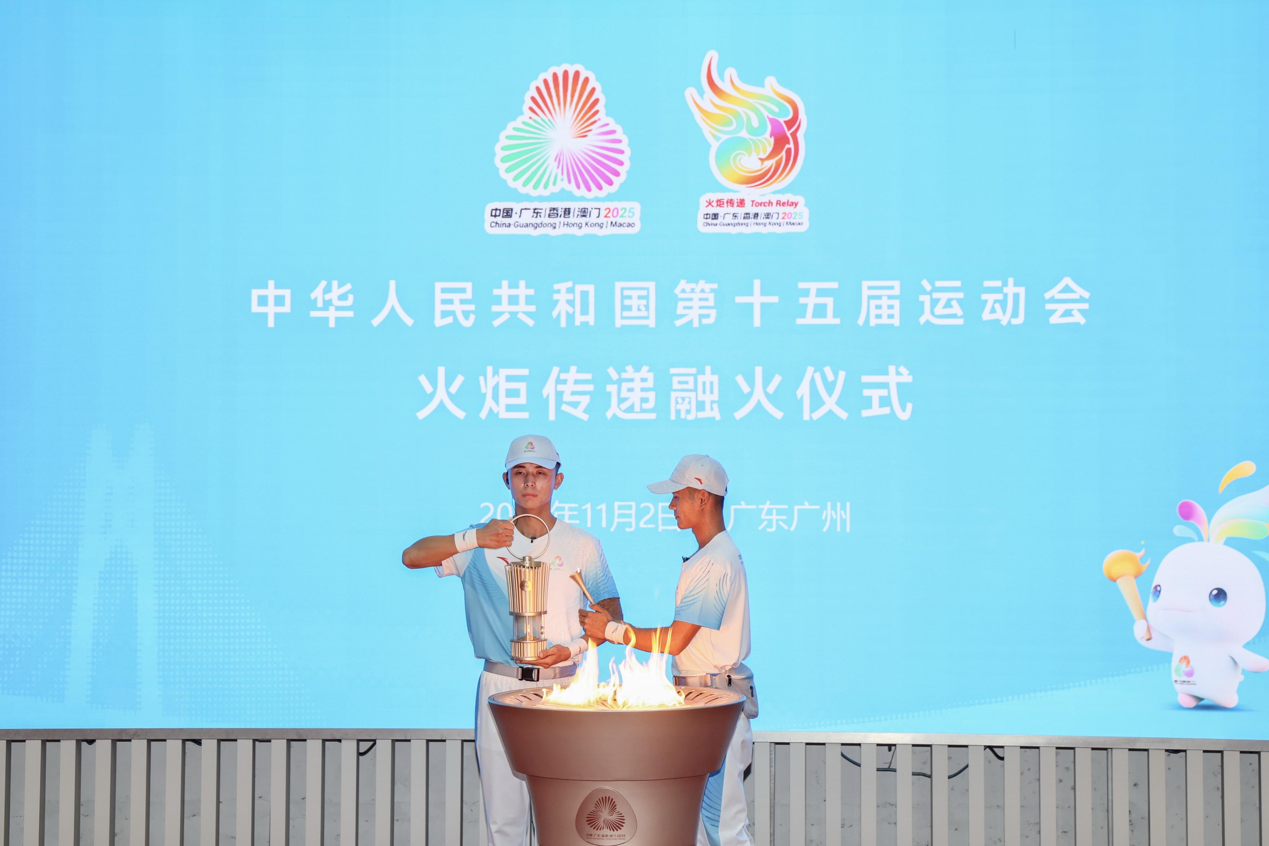 11月2日下午,中华人民共和国第十五届运动会(以下简称“十五运会”)火炬传递融火仪式在广东奥林匹克体育中心成功举行。