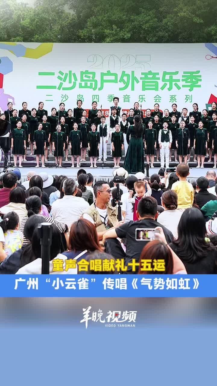 在十五运会即将到来之际,11月1日下午,2025二沙岛户外音乐季第二场音乐会在星海音乐厅户外草坪举行,广州市越秀区小云雀合唱团激情唱响了由何沐阳创作的十五运会会歌《气势如虹》。在合唱团总监邓群老师的执棒下,“小云雀”们以磅礴大气的演唱,与现场近千名观众一起为全运会打call,用歌声向运动健儿们表达了最热烈的欢迎与最诚挚的祝福。