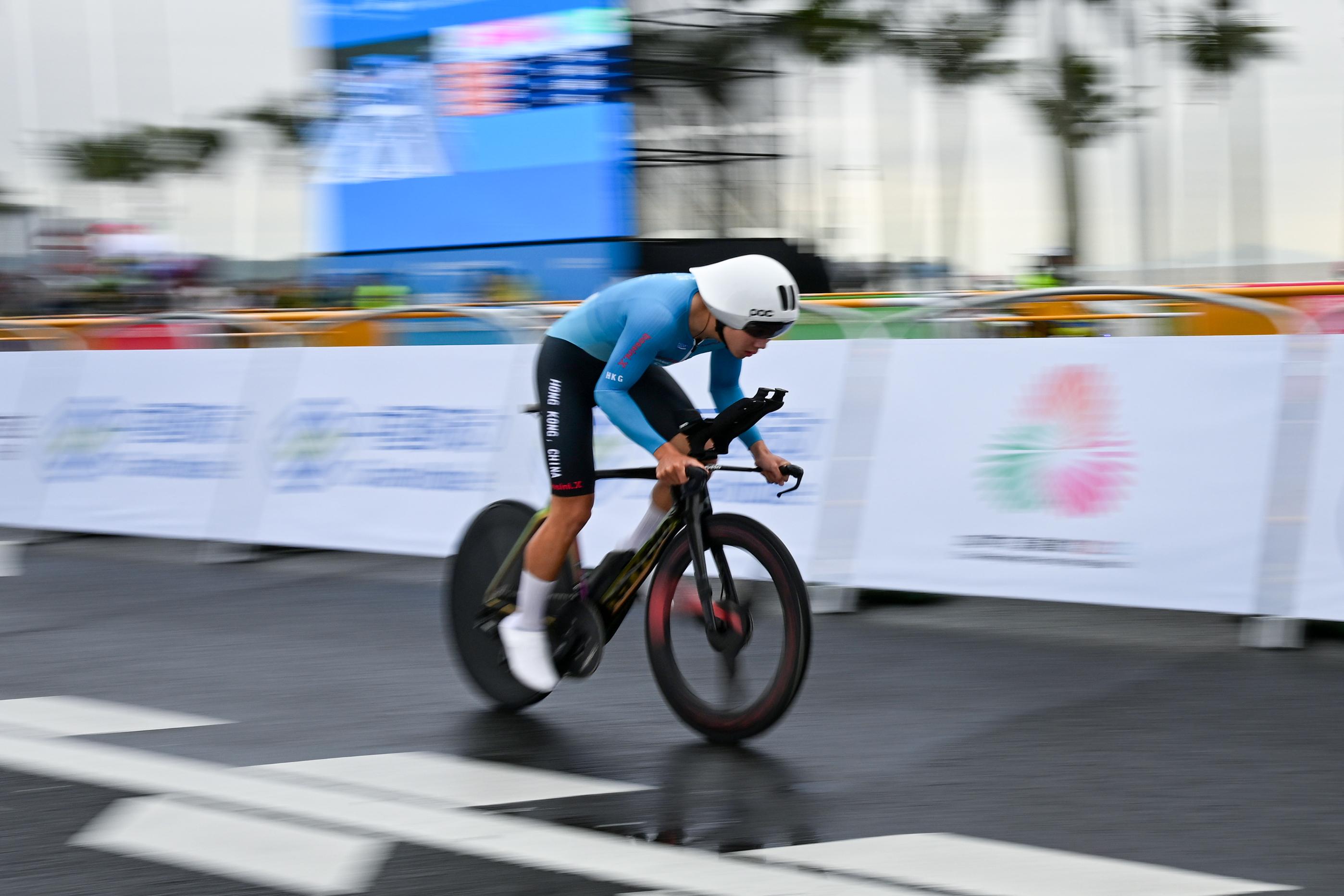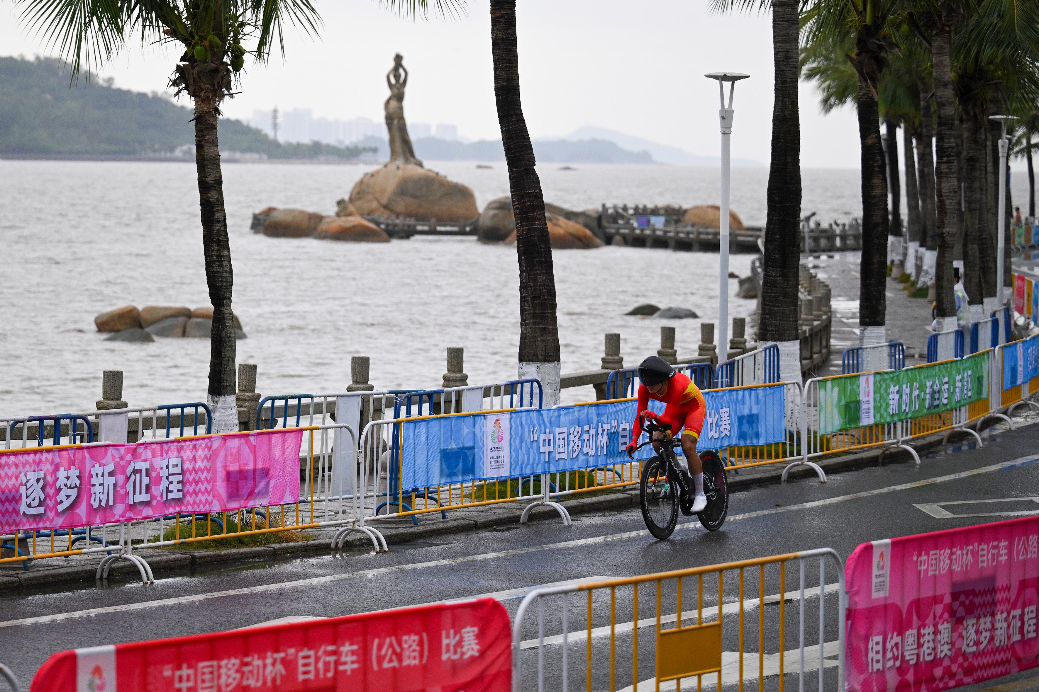 11月7日,十五运会自行车(公路)赛首个比赛日在珠海结束,男、女子个人计时赛冠军分别产生。