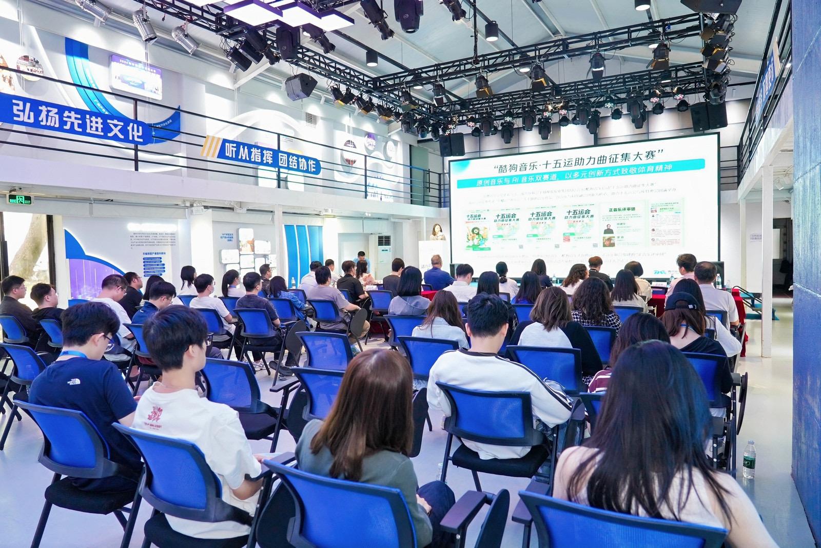 授旗仪式后,现场进行了岭南音乐创作推广基地的总结。酷狗内容运营中心代表以“风起岭南,以粤为媒”为主题,围绕内容生产、场域推广及产品赋能等核心策略,总结了酷狗音乐在创作推广岭南文化上的成果与规划。