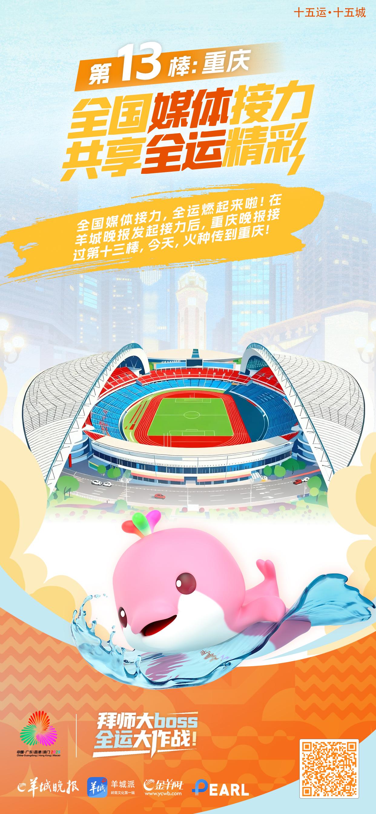 十五运·十五城!“拜师大BOSS,全运大作战”!十五运会和残特奥会倒计时,全运燃起来啦!在羊城晚报发起接力后,重庆晚报接过第十三棒,今天,火种传到重庆!