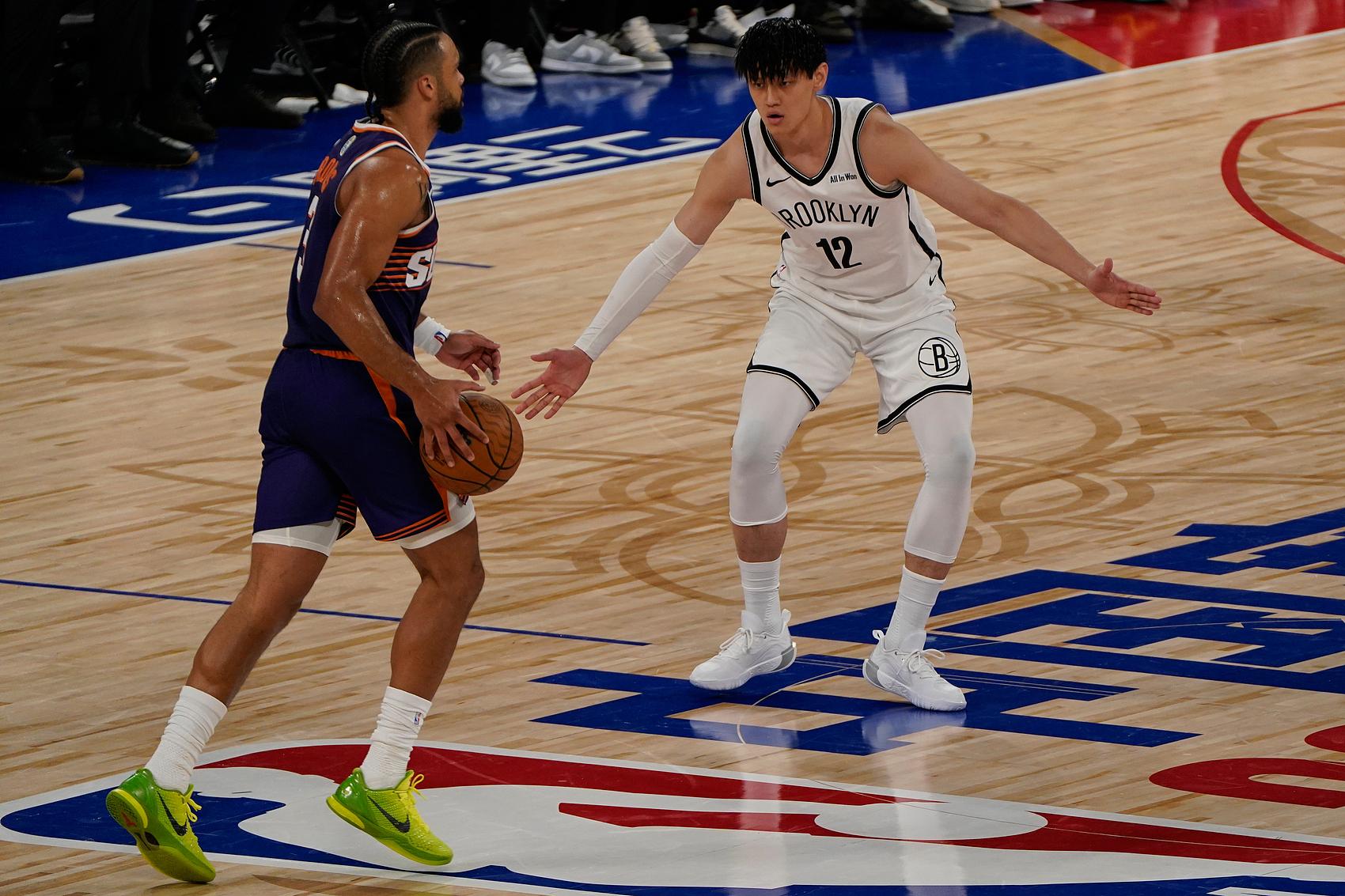 曾凡博本场的首次出场时段也证明了这一点。比赛首节,篮网队当家球星托马斯火力全开,前6投全部命中砍下14分,帮助篮网一举拉开分差,为曾凡博在第二节末段的出场创造了条件。第二节还剩3分06秒时,曾凡博终于迎来了自己的首秀时刻,但他在登场11秒后,在一次防守回合中掩护后强延误,但因动作过大将太阳球星布克撞倒在地,领到本场个人第一次犯规;23秒后,曾凡博倒地冲抢地板球,又将对方球员撞倒,领到个人本场第二次犯规。而在之后的一个回合,曾凡博在退防中漏掉狄龙·布鲁克斯,导致对方投中快速反击三分。