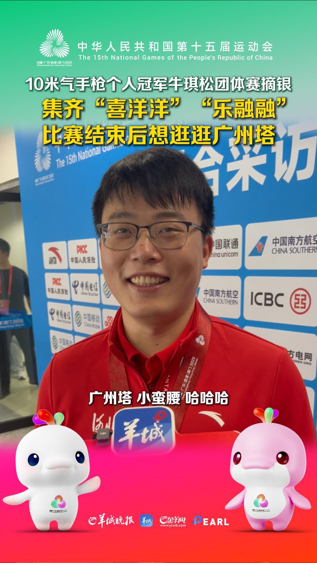 视频丨10米气手枪个人冠军牛琪松团体赛摘银,集齐“喜洋洋”“乐融融”后想逛广州塔