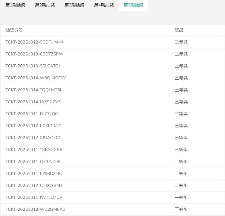注意:本次活动共五期的中奖名单均已公布,中奖观众需在2025年10月31日24时前完成兑奖,逾期未兑奖的,将视为自动放弃中奖资格,奖品不予补发。