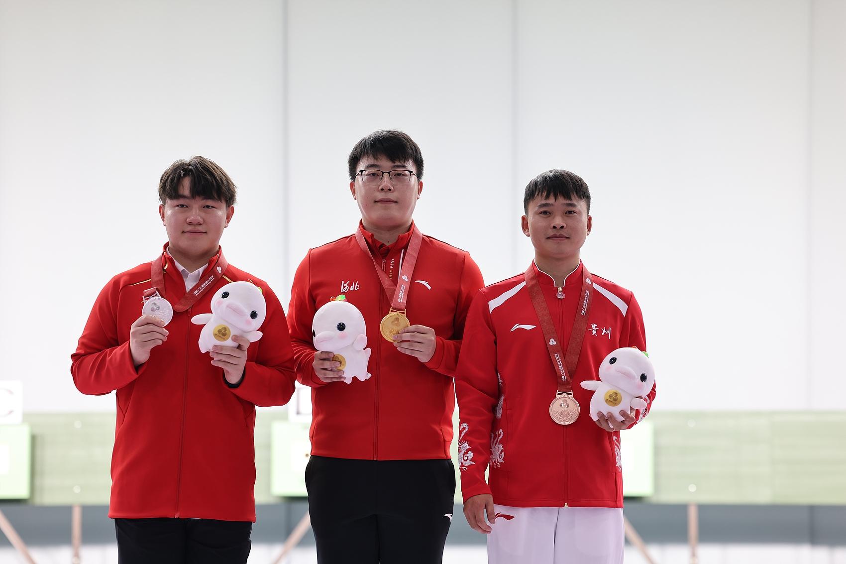 10月15日,第十五届全运会男子10米气手枪决赛上演精彩对决。河北选手牛琪松以241.2环的优异成绩力压奥运冠军谢瑜,成功摘金。