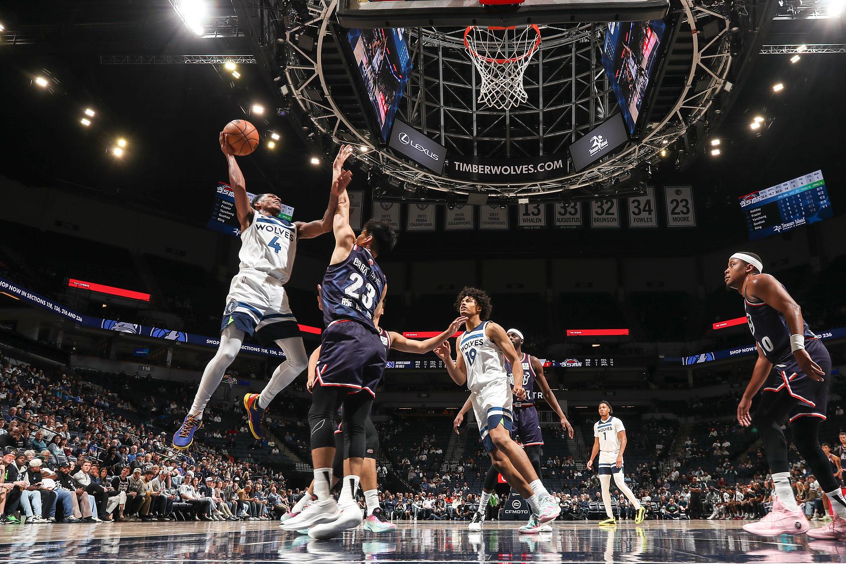 上一场和快船队的比赛中,广州队一度在上半时和对手打得有来有回,但此役面对森林狼的青年队,广州队并没有太多办法。为了争取新赛季的上场时间,森林狼球员可以说倾尽了全力,凶猛的火力让广州队无法招架。全场比赛森林狼比广州队多抢了27个篮板,多投中了12个三分。