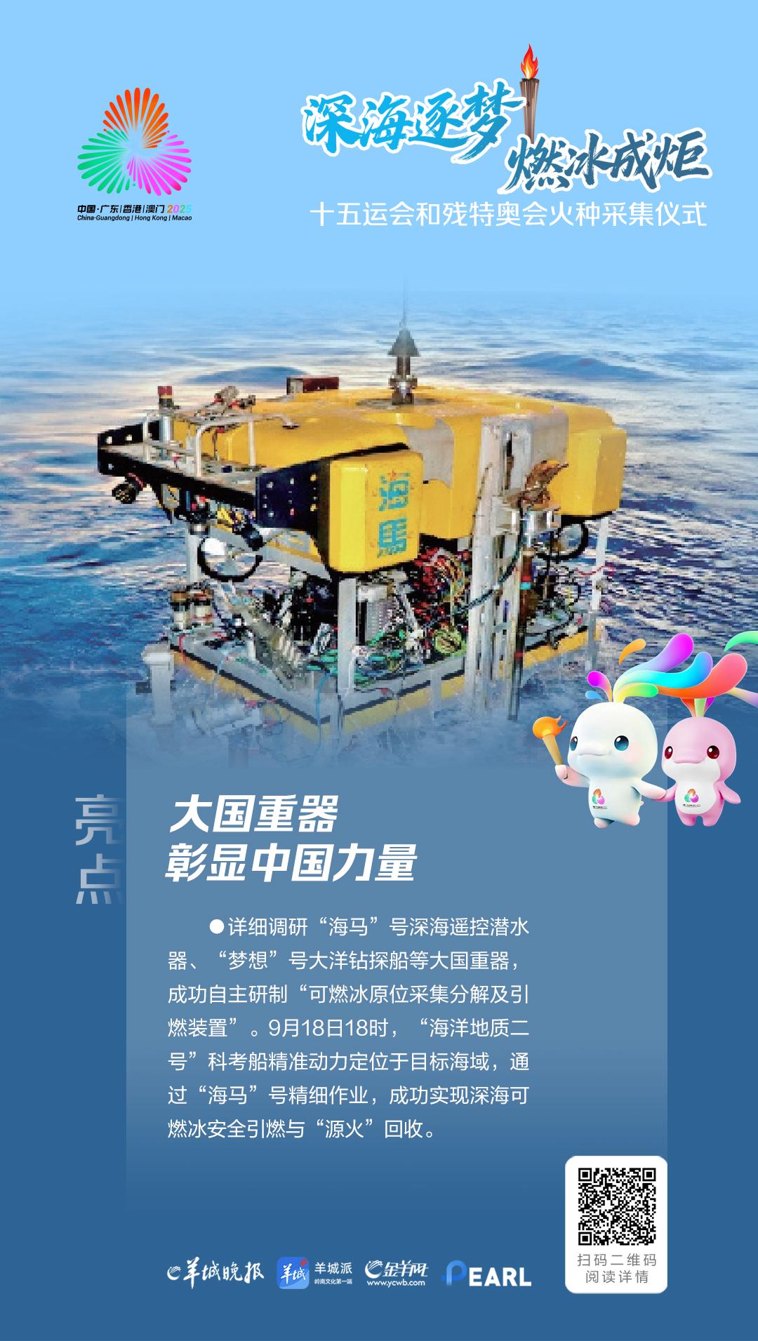 10月9日,十五运会和残特奥会火种采集仪式在广州南沙科考码头举行。深海逐梦,全运之火见证海洋科技之光!本次深海采火亮点抢鲜看!