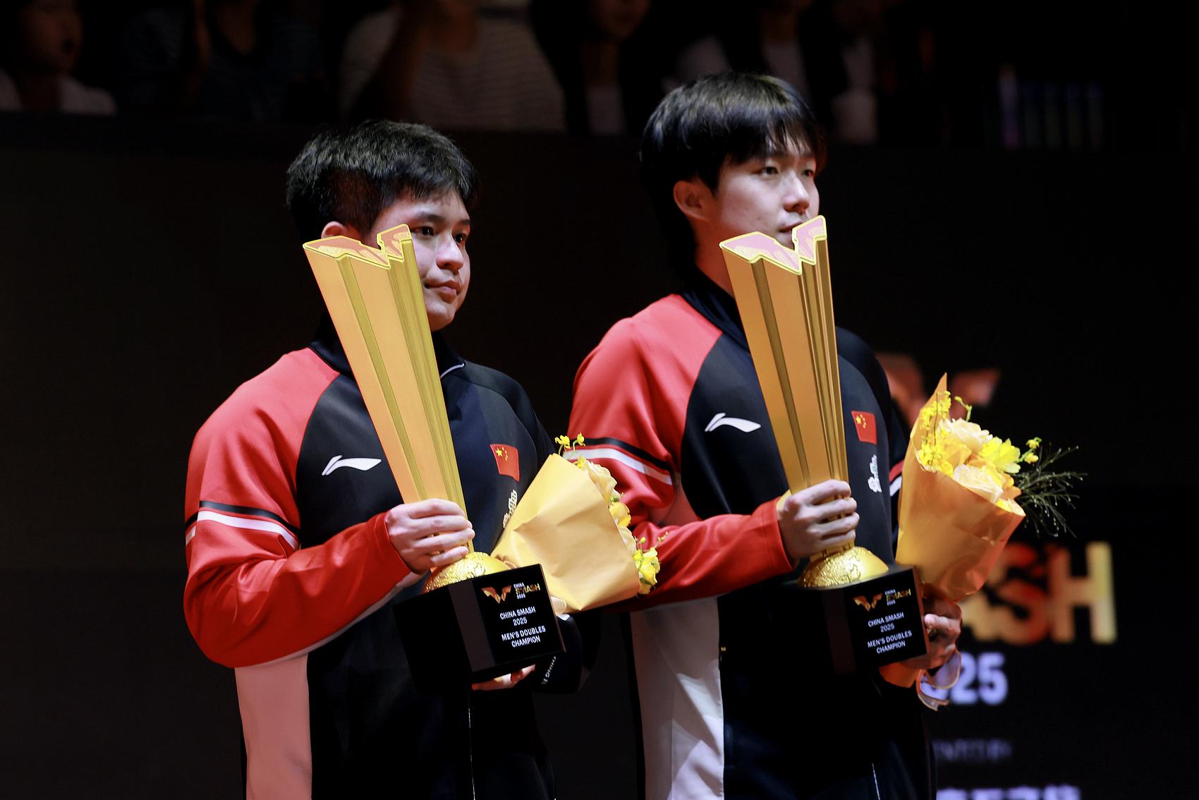 10月4日,WTT中国大满贯继续在北京石景山展开较量,在当晚的男双决赛中,中国组合王楚钦/林诗栋直落三局击败另一对国乒组合周启豪/陈俊菘,夺得男双冠军,这是国乒在本站赛事中夺得的第三个单项冠军。凭借这个男双冠军,国乒也得以终结今年2月的WTT新加坡大满贯后连续多站国际赛事男双无冠的窘境,值得一提的是,上次夺得大满贯赛事男双冠军的国乒组合同样是王楚钦/林诗栋。