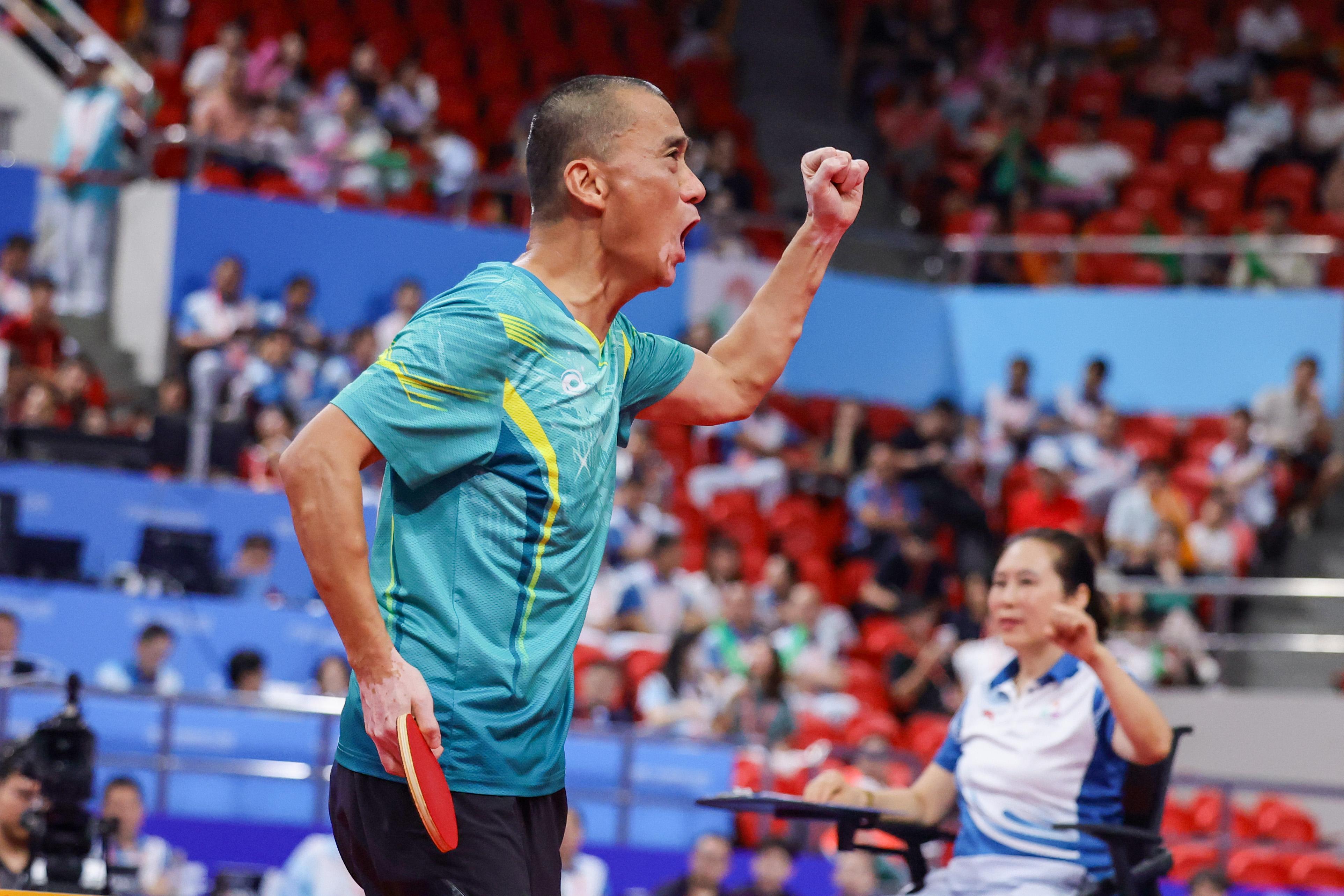 “我在参赛之前就知道团体赛决赛日是我60岁生日。河南队打进决赛之后,我就想,不管怎么说,在我生日这一天,我们一定要站上最高领奖台。”一手拿着金牌,一手捧着吉祥物,“寿星公”范良军大声高喊:“最好的生日礼物就是获得了金牌,为河南人民争了光,为河南乒协争了气。”